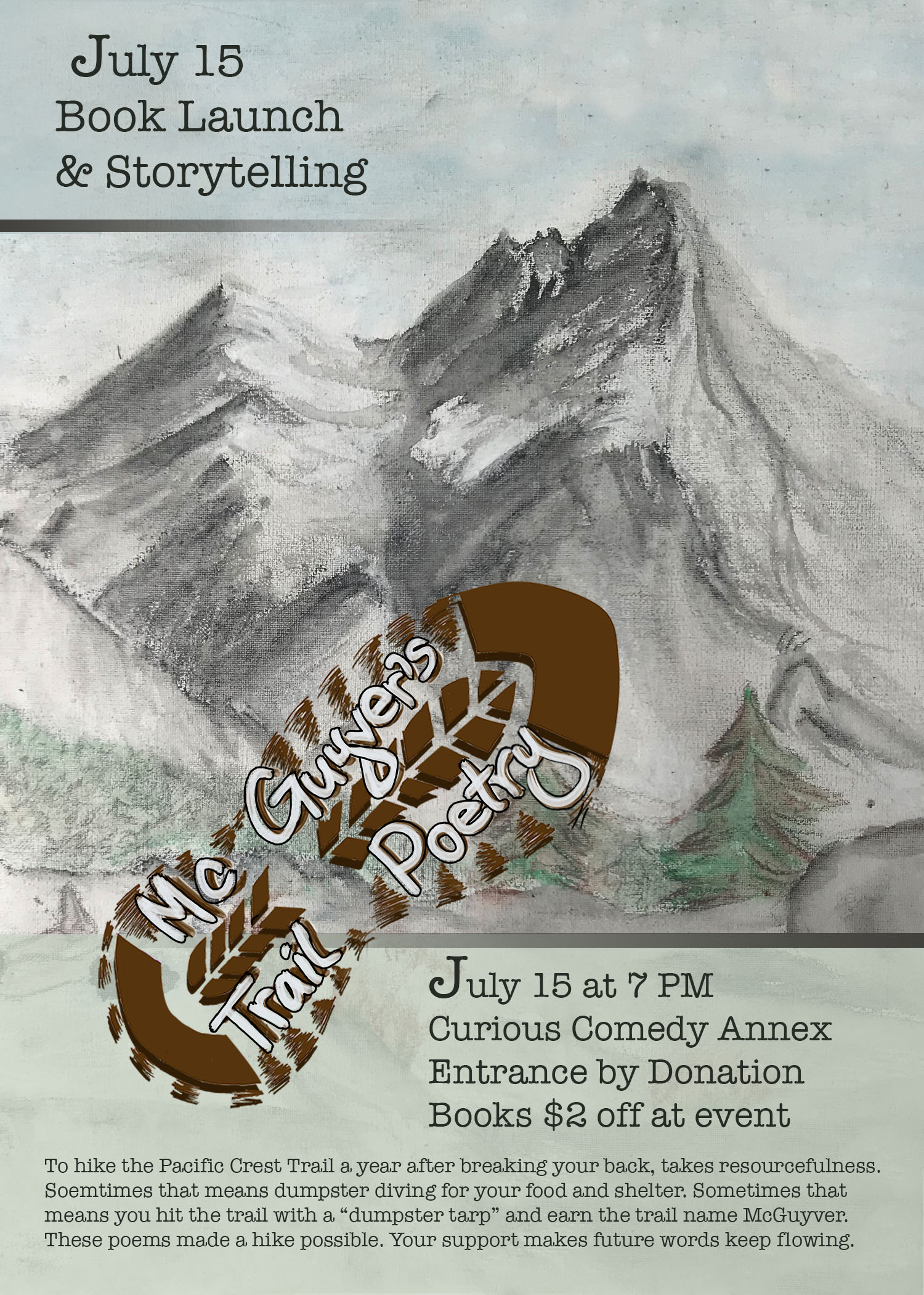 Graphic is one of my many skills. These three pieces are meant to show the broad reach of my skills, but I’m personally the most fond of the poster from my Poetry Reading Event. I hand painted the background, and designed the poster in Photoshop.